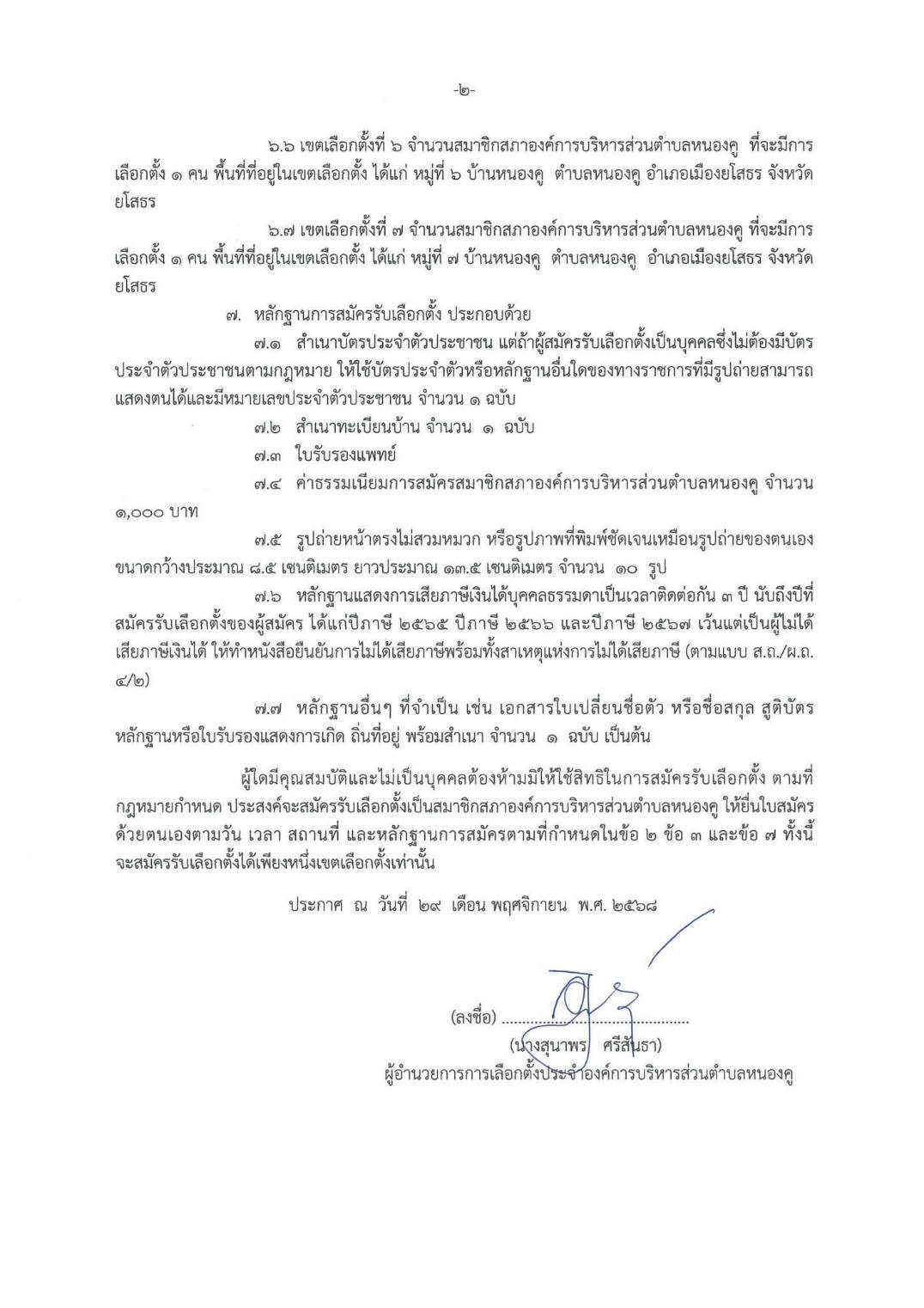 ประกาศผู้อำนวยการเลือกตั้งประจำองค์การบริหารส่วนตำบลหนองคู เรื่อง ให้มีการเลือกตั้งสมาชิกสภาองค์การบริหารส่วนตำบลหนองคู