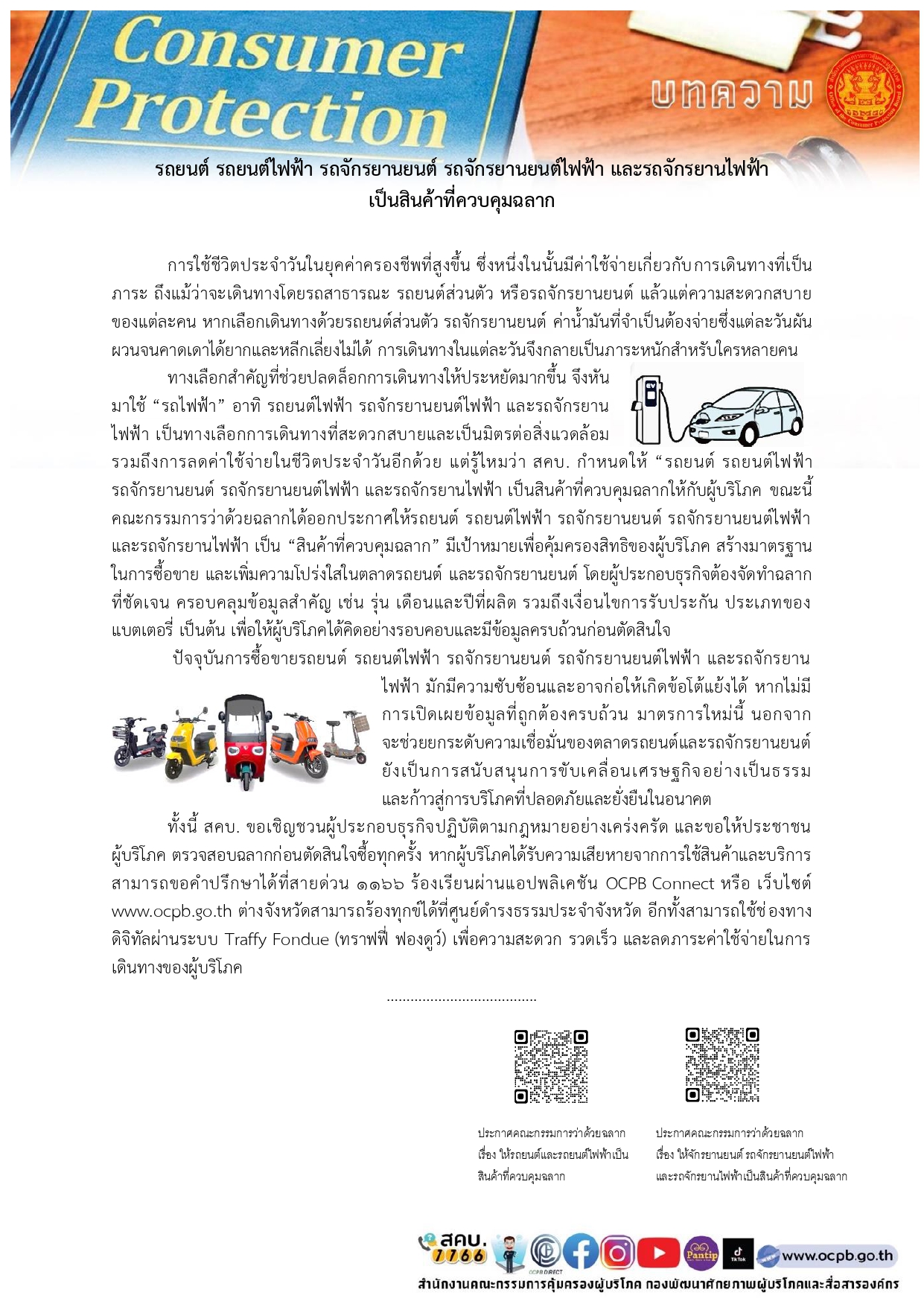 1. รถยนต์และรถยนต์ไฟฟ้า-รถจักยานยนต์และรถยนต์ไฟฟ้า เป็นสินค้าที่ควบคุมฉลาก